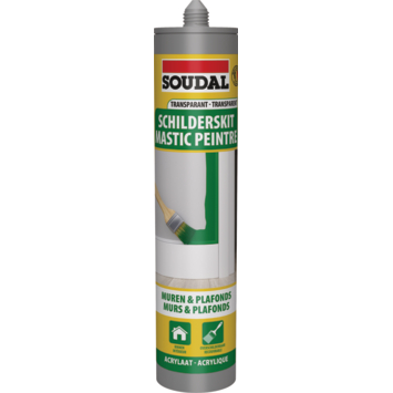 De Soudal schilderskit transparant 290 ml is gemaakt om voegen en kleine scheuren netjes af te dichten. Je gebruikt deze acrylaatkit bij raam- en deurwerk, trappen of aansluitingen tussen muren en plafonds. Omdat de kit overschilderbaar is met de meeste verfsoorten, werk je alles mooi af in dezelfde kleur als de muur of het houtwerk. Zo krijg je een egaal resultaat zonder zichtbare naden of kieren.