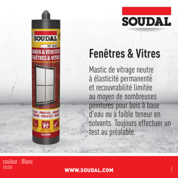Soudal heeft afdichtingskitten en voegkitten voor elke klus in huis, zodat jij jouw huis kan perfectioneren. Gebruik Soudal Ramen & Vensters voor alle beglazingswerken en aansluitvoegen tussen ramen en muur. Deze neutrale kit is overschilderbaar met de meeste water- en solventgedragen verven. Verkrijgbaar in verschillende kleuren zoals wit.
