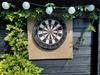 Ik zocht een manier om mijn dartbord van een achterplaat te voorzien en zo makkelijk op ons tuinhuis op de camping te kunnen hangen. Zo vermijd ik ook beschadiging van de muur door naastgooien.