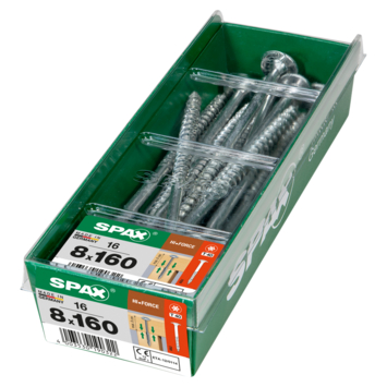 De SPAX Hi-Force schroef T-STAR plus deeldraad discuskop 4CUT 8 x 160 mm 16 stuks is een robuuste bevestigingsoplossing voor houtbouw en trappenprojecten. De deeldraadconstructie zorgt voor een stevige grip en maakt het bevestigen snel en efficiënt. De discuskop verdeelt de kracht gelijkmatig, wat scheuren of splijten van het materiaal voorkomt. Met de T-STAR plus-aandrijving heb je optimale controle en krachtoverbrenging tijdens het indraaien, zonder dat de bit doorschiet. De Wirox-coating biedt uitstekende bescherming tegen roest en verlengt de levensduur van de schroef. Dankzij de 4CUT-punt is voorboren meestal niet nodig, wat tijd bespaart bij het monteren van houtconstructies.