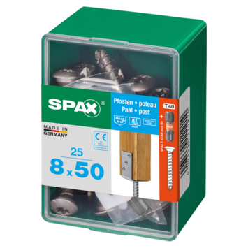 De SPAX verbindingsschroef T-STAR plus centreerkop 8 x 50 mm 25 stuks is ontworpen voor precieze en sterke verbindingen. Deze schroef is vervaardigd uit roestvrij staal A1 en biedt daardoor uitstekende weerstand tegen roest en vocht. De T-STAR plus kop zorgt voor een stevige grip bij het indraaien, waardoor je nauwkeurig kunt werken zonder dat de schroevendraaier wegglijdt. Dankzij de centreerkop kun je de schroef eenvoudig en precies positioneren. De voldraadconstructie garandeert een stabiele bevestiging met maximale grip over de volledige lengte. Ideaal voor binnengebruik en geschikt voor uiteenlopende montageklussen.