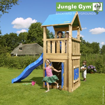 Welke dappere ridder houdt hier straks de wacht? Dit compacte speelkasteeltje heeft twee verdiepingen en een glijbaan met optionele wateraansluiting. De onderste verdieping heeft een deurtje en een raam van historische blauwe luikjes met gele details. De scharnieren zijn speciaal ontworpen en veilig voor kleine handjes tijdens het openen en sluiten. Het overslag slotje is van beide kanten open en dicht te maken.
