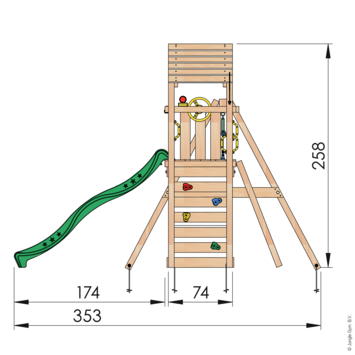Elke dag urenlang speelplezier in eigen tuin. Schommelzitje, trapeze, lange glijbaan, zandbak, klimwand met grote klimgrepen, trapje, telescoop en stuur. Voor kids 3-10 jaar. Jungle Gym speeltoestellen worden al 30 jaar ontworpen en geproduceerd in Nederland en staan bekend om hun topkwaliteit. Veiligheid staat altijd voorop, alle producten worden uitgebreid getest en voldoen aan de meest actuele Europese veiligheidsvoorschriften EN 71. Daarnaast zijn ze 100% compleet, aan alles is gedacht en standaard meegeleverd. De materialen zijn van hoge kwaliteit, weerbestendig, praktisch onderhoudsvrij en kindveilig zonder toxische stoffen/allergenen.