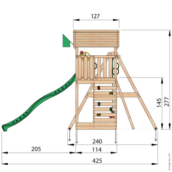 Bied je kinderen eindeloos plezier in de tuin met dit fantastische speeltoestel. Voorzien van twee schommelzitjes, een lange glijbaan, een zandbak, een klimwand met grote klimgrepen, een trapje, een telescoop en een stuur. Dit speeltoestel is ontworpen voor kinderen van 3-10 jaar en prikkelt hun fantasie en avontuurlijke geest. Jungle Gym speeltoestellen worden al 30 jaar met passie ontworpen en geproduceerd in Nederland, en staan garant voor topkwaliteit en veiligheid. Onze producten voldoen aan de strengste Europese veiligheidsvoorschriften (EN 71) en de materialen zijn duurzaam, weerbestendig en veilig voor kinderen, vrij van toxische stoffen en allergenen. Kies voor zorgeloos speelplezier en geef je kinderen de beste speelervaring in hun eigen tuin.
