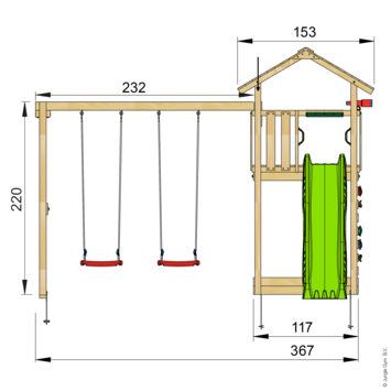 Speeltoestel Jungle Gym Cottage grenen geïmpregneerd met glijbaan groen en 2-schommel module