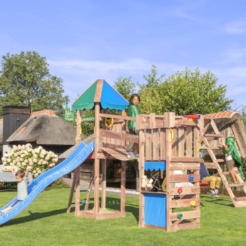 Dit is een echt buitenspeel-paradijs. Met een hangbrug, 2 schommelzitjes, klimrek met groot klimnet, speelwinkeltje, lange glijbaan, zandbak, klimwand met grote klimgrepen, trapje, telescoop en stuur. Voor kids 3-10 jaar. Jungle Gym speeltoestellen worden al 30 jaar ontworpen en geproduceerd in Nederland en staan bekend om hun topkwaliteit. Veiligheid staat altijd voorop, alle producten worden uitgebreid getest en voldoen aan de meest actuele Europese veiligheidsvoorschriften EN 71. Daarnaast zijn ze 100% compleet, aan alles is gedacht en standaard meegeleverd. De materialen zijn van hoge kwaliteit, weerbestendig, praktisch onderhoudsvrij en kindveilig zonder toxische stoffen/allergenen.