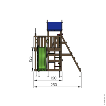 Speeltoestel Jungle Gym Nomad met groene glijbaan en klimrek van grenenhout