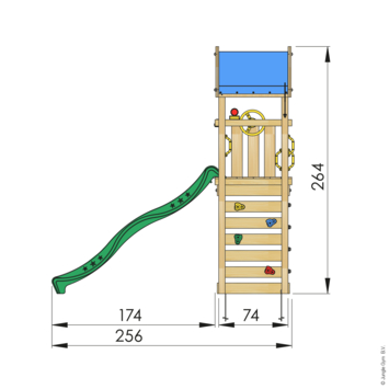 Compact en toch zoveel speelplezier. Met lange glijbaan, zandbak, klimwand met grote klimgrepen, trapje, telescoop en stuur. Voor kids 3-10 jaar. Jungle Gym speeltoestellen worden al 30 jaar ontworpen en geproduceerd in Nederland en staan bekend om hun topkwaliteit. Veiligheid staat altijd voorop, alle producten worden uitgebreid getest en voldoen aan de meest actuele Europese veiligheidsvoorschriften EN 71. Daarnaast zijn ze 100% compleet, aan alles is gedacht en standaard meegeleverd. De materialen zijn van hoge kwaliteit, weerbestendig, praktisch onderhoudsvrij en kindveilig zonder toxische stoffen/allergenen.