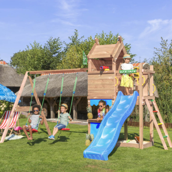 Speeltoestel Jungle Gym Resort douglas met glijbaan blauw en 2-schommel module