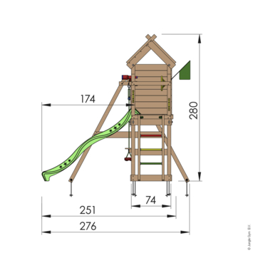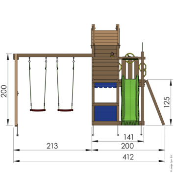 Speeltoestel Jungle Gym Resort met groene glijbaan en dubbele schommel van grenenhout