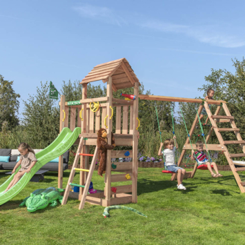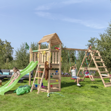 Een droom voor elk kind. Met 2 schommelzitjes, klimrek met groot klimnet, lange glijbaan, zandbak, klimwand met grote klimgrepen, trapje, telescoop en stuur. Voor kids 3-10 jaar. Jungle Gym speeltoestellen worden al 30 jaar ontworpen en geproduceerd in Nederland en staan bekend om hun topkwaliteit. Veiligheid staat altijd voorop, alle producten worden uitgebreid getest en voldoen aan de meest actuele Europese veiligheidsvoorschriften EN 71. Daarnaast zijn ze 100% compleet, aan alles is gedacht en standaard meegeleverd. De materialen zijn van hoge kwaliteit, weerbestendig, praktisch onderhoudsvrij en kindveilig zonder toxische stoffen/allergenen.