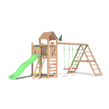 Jungle Gym speeltoestellen zijn zo ontworpen dat ze heel eenvoudig zelf te monteren zijn. Met zelftappende, gegalvaniseerde schroeven en bouten. Voor een perfecte pasvorm is het hout niet voorgeboord, want hout reageert van nature op temperatuur en vochtigheid. Inclusief stap-voor-stap geïllustreerde handleiding, afwerkdoppen, handige schroefbits en boortjes set.