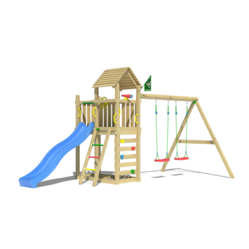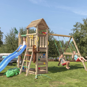 Dit speeltoestel zorgt voor ultiem speelplezier. Met 2 schommelzitjes, lange glijbaan, zandbak, klimwand met grote klimgrepen, trapje, telescoop en stuur. Voor kids 3-10 jaar. Jungle Gym speeltoestellen worden al 30 jaar ontworpen en geproduceerd in Nederland en staan bekend om hun topkwaliteit. Veiligheid staat altijd voorop, alle producten worden uitgebreid getest en voldoen aan de meest actuele Europese veiligheidsvoorschriften EN 71. Daarnaast zijn ze 100% compleet, aan alles is gedacht en standaard meegeleverd. De materialen zijn van hoge kwaliteit, weerbestendig, praktisch onderhoudsvrij en kindveilig zonder toxische stoffen/allergenen.