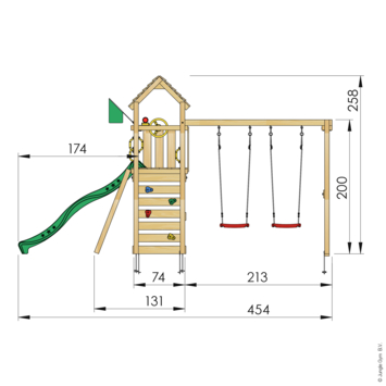 Dit speeltoestel zorgt voor ultiem speelplezier. Met 2 schommelzitjes, lange glijbaan, zandbak, klimwand met grote klimgrepen, trapje, telescoop en stuur. Voor kids 3-10 jaar. Jungle Gym speeltoestellen worden al 30 jaar ontworpen en geproduceerd in Nederland en staan bekend om hun topkwaliteit. Veiligheid staat altijd voorop, alle producten worden uitgebreid getest en voldoen aan de meest actuele Europese veiligheidsvoorschriften EN 71. Daarnaast zijn ze 100% compleet, aan alles is gedacht en standaard meegeleverd. De materialen zijn van hoge kwaliteit, weerbestendig, praktisch onderhoudsvrij en kindveilig zonder toxische stoffen/allergenen.