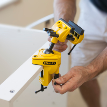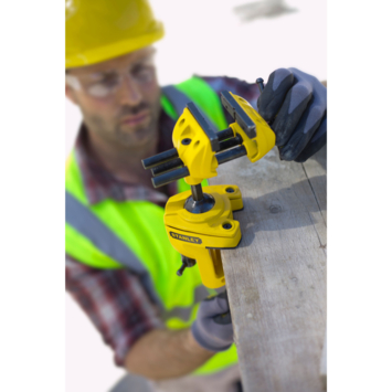 De Stanley boorklem (1-83-069) kan je gebruiken voor diverse boorklussen. De boorklem heeft een vergrendelbaar kniegewricht en is hierdoor maar liefst 360° te draaien. Dankzij de constructie van gegoten aluminium is de bankschroef niet alleen erg sterk, maar ook licht en dus gemakkelijk te verplaatsen. De basis van de boorklem kan je op de werkbank bevestigen voor extra stabiliteit. Om de boorklem nog wendbaarder te maken kan je de beschermkappen verwijderen. De boorklem heeft een klemcapaciteit van 80mm en klemdiepte van 40mm.