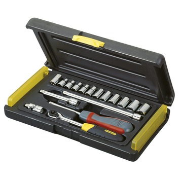 Met de Stanley dopsleutelset beschik je over een handige set van 11 dopsleutels met verschillende diameter en de bijhorende accessoires. Op die manier kun je vlot aan de slag bij diverse werkzaamheden.