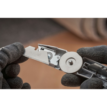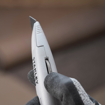 Het STANLEY FatMax Pro vast mes FMHT10501-0 is een professioneel mes voor heavy-duty snijwerk. In de gegoten alumiumbehuizing is plaats voor 10 reservemesjes. Met een draaiwiel kun je de behuizing zeer eenvoudig openen om een nieuw mes te plaatsen. Het mes ligt zeer prettig in de hand. Wordt geleverd met twee standaard reservemesjes en een haakmesje. Inclusief draagholster. Goede prijs-/kwaliteitverhouding.