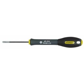 Stanley FatMax schroevendraaier Phillips 0-65-204 heeft een tip geschikt voor schroeven PH00 en een kling van 50 mm lengte. De stalen kling is van zeer hoge kwaliteit wat zorgt voor een hoge weerstand en een geringe kans op afbraak van de tip. De handgreep is rechtstreeks op de kling gevormd, waardoor hij nagenoeg onbreekbaar is. De handgreep is smal van voor zodat je snel kunt schroeven en loopt breed uit zodat je ook veel kracht kunt zetten. Het handvat is voorzien van speciale anti-slip rubber waardoor je altijd maximale grip hebt.
