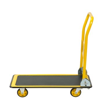 De plateauwagen heeft een lengte van drieënzeventig cm een breedte van zevenenveertig cm en een hoogte van honderd cm waardoor je voldoende ruimte hebt voor diverse transportklussen. De combinatie van de vlakke ondergrond en de rubberen toplaag geeft extra zekerheid tijdens het verplaatsen van je lading.