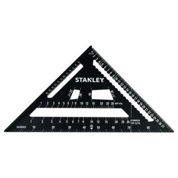 De STANLEY bouwdriehoek STHT46102-0 is een veelzijdig hulpmiddel voor al je projecten. Eén zijde heeft een extra dik profiel, waardoor hij als zaaggeleider kan dienen. Met een 90° gradenboog en schaalverdeling per graad voor het eenvoudig meten van hoeken. Standaardhoeken van dakspanten zijn gemakkelijk en snel af te tekenen. Diverse uitsparingen houden je potlood op zijn plaats, zodat je perfecte lijnen kunt trekken over de hele lengte van een plank. Met een pivoteerpunt voor gebruik als gradenboog. Door zijn afmetingen past hij gemakkelijk in je gereedschapskist. Gemaakt van aluminium. Lengte: 300 mm.