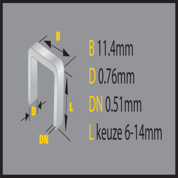 Stanley nieten 1-TRA205T zijn de meest gangbare nieten voor algemeen gebruik. Ze hebben een breedte van 11,4 mm en een hoogte van 8 mm. Type A. Inhoud: 1.000 stuks. Ze zijn gegalvaniseerd, dus bestand tegen corrosie.