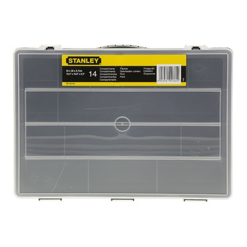 De Stanley assortimentsdoos 14-vaks, type 16-14, is ideaal voor het opbergen van kleine materialen en gereedschappen. Met 14 vaste vakken biedt de doos voldoende ruimte om je spullen georganiseerd en gesorteerd te houden. Het transparante deksel zorgt ervoor dat je in één oogopslag kunt zien wat er in de doos zit, wat het zoeken naar de juiste materialen een stuk eenvoudiger maakt. De lichtgewicht en stevige constructie maakt de doos perfect voor zowel thuisgebruik als in de werkplaats.