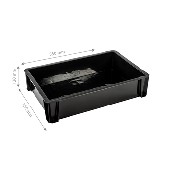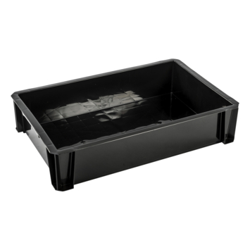 Handige en stevige stapelbare krat. Ook prettig om op verrijdbare “hondjes” te plaatsen.