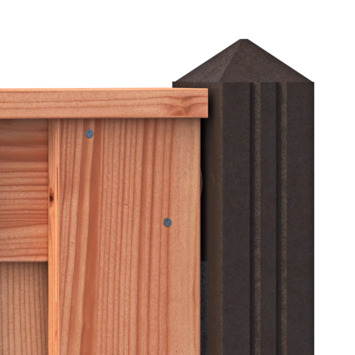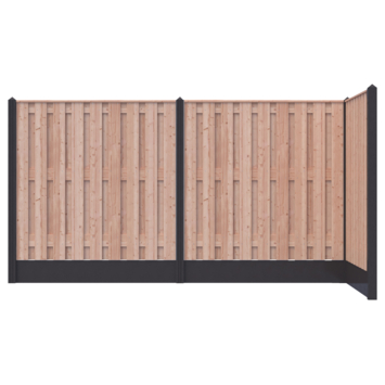 Een houtbeton schutting heeft dankzij de materiaalcombinatie van beton en hout een moderne look en een lange levensduur. Deze schutting wordt gezien als de meest duurzame keuze. De gevoelige delen van de schutting die in de grond komen te staan, zoals de palen en onderplaten, worden gemaakt van beton. Startpakket Houtbeton tuinscherm Douglas 1 hoek