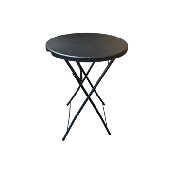 De zwarte statafel van 110 cm hoog biedt plaats aan 5 personen en geeft een handige plek voor drank of hapjes. Het ronde blad van 80 cm diameter is 4,5 cm dik en van HDPE, stevig en makkelijk af te nemen. Het stalen frame zorgt voor stabiliteit en het opvouwbare ontwerp maakt opbergen eenvoudig. Perfect voor een borrel, tuinfeest of evenement in je tuin of op het terras.