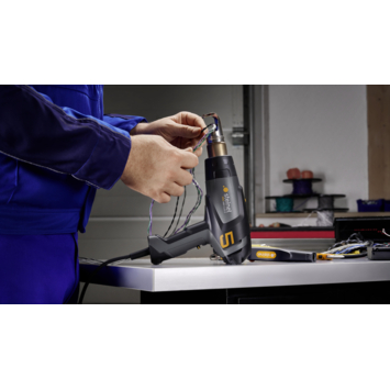 De Steinel HM 2120 E is een professioneel heteluchtpistool met nauwkeurige instellingen. De temperatuur is instelbaar in 9 stappen van 80 tot 630°C en het luchtvolume kies je uit 3 standen tot 500 l/min. Dankzij het keramisch verwarmingselement werk je stabiel en efficiënt. Het toestel is ideaal voor toepassingen zoals verf verwijderen, kunststof bewerken of soldeerwerk. De 2,2 meter kabel zorgt voor een flexibele hantering. Wordt geleverd in een handige opvouwbare doos.