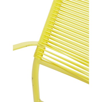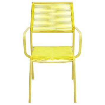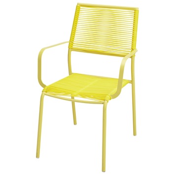 Stoel Bonaire geel is een hippe, stapelbare stoel die je doet dromen van verre oorden. Hij heeft een stalen frame en een kleurrijke, stevige wickerbekleding. Verkrijgbaar in verschillende kleuren.