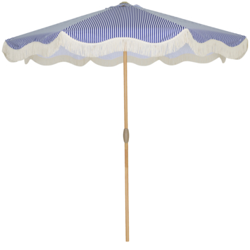 Strandparasol Ø 250 cm blauw/wit streep met franjes119.00