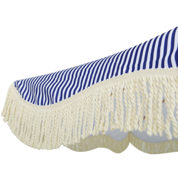 - Vrolijk ontwerp met blauw/witte strepen en franjes
