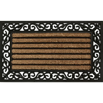 Deze deurmat uit kokos van 45 op 75 centimeter heeft een klassiek elegant patroon. De voetmat of schoonloopmat heeft een poolhoogte van 15 mm en een pvc rug, zodat de mat goed blijft liggen. Het voordeel van kokos? Veegt het vuil goed uit je schoenen op een 100% natuurlijke manier. Ook verkrijgbaar met andere patronen.
