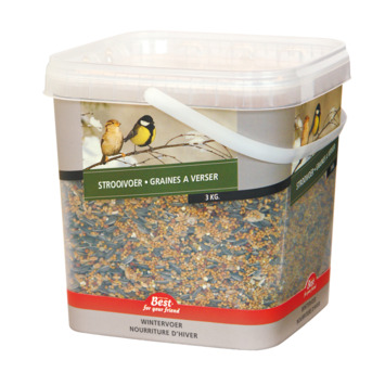 Deze emmer strooivoer bestaat uit een gevarieerd assortiment van strooivoer dat boordevol voedingsstoffen zitten. Het strooivoer is speciaal voor tuinvogels en is leuk om uit te strooien in uw tuin of in een vogelvoer huisje. In de emmer zit 3 kg strooivoer.