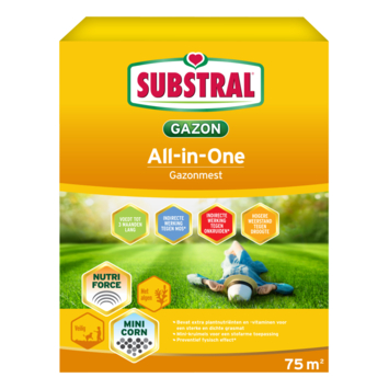Substral Gazonmest All-In-One is een organisch-minerale meststof en brengt je gazon in topconditie dankzij de aanbreng van een mix aan essentiële nutriënten.
