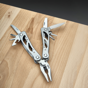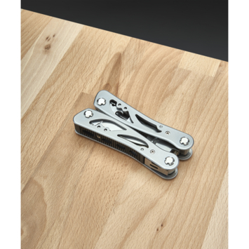 De Suki multitool 12 delig is gemaakt van roestvaststaal. Dit maakt de stevige multitool geschikt voor meerdere doeleinden. Het gereedschap heeft namelijk 12 verschillende functies. De multitool van Suki is bijvoorbeeld te gebruiken als punttang, griptang of snijtang, maar ook als houtzaag, vijl, blik- en flesopener of priem. Daarnaast bevat het multifunctionele gereedschap 2 verschillende messen, 2 platte schroevendraaiers en een kruiskopschroevendraaier. In Suki’s assortiment vindt u een handige messenhouder met riembevestiging waaraan u de multitool bevestigt, zodat u deze makkelijk meeneemt. De Suki multitool is namelijk onmisbaar gereedschap voor thuis, maar ook voor onderweg.