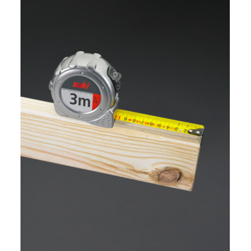 Het meten van zowel buitenwerkse als binnenwerkse maten doet u met de Suki rolbandmaat van 3 meter. De geijkte rolmaat is voorzien van een blokkeerknop. Hiermee zet je de maatband eenvoudig vast op de gewenste meetafstand. Wanneer je klaar bent met opmeten zorgt de krachtige veer van de rolbandmaat ervoor dat de band weer netjes wordt opgerold. Dit oprollen gebeurt in de kunststof kast die schokbestendig is. Tevens is de rolmeter voorzien van een broekclip. Met behulp van deze handige clip bevestig je het meetgereedschap eenvoudig aan uw broek of broekriem. Zo heb je de rolbandmaat met een totale lengte van 3 meter altijd direct bij de hand. Op zoek naar een andere rolbandmaat? Bekijk het GAMMA assortiment met daarin diverse rolbandmaten met verschillende lengtes.