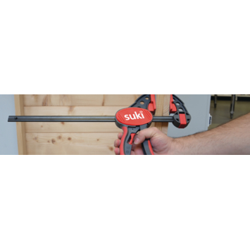 Met de Suki snelspanklem 300 mm met spreidfunctie klem je moeiteloos werkstukken vast tijdens het verlijmen. De klem zorgt ervoor dat de onderdelen stevig op hun plaats blijven tot de lijm droog is. Via de snelkoppeling kan je de vaste klauw eenvoudig omzetten, zodat de klem ook als spreider kan dienen. Met een bereik van 30 cm is deze klem geschikt voor verschillende toepassingen. Bovendien is ze met één hand te bedienen, wat extra gebruiksgemak biedt. De zachte beschermkappen op de bekken voorkomen krassen of beschadigingen aan je materiaal.