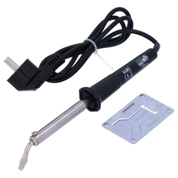 De Suki soldeerbout van 60 W is geschikt voor zachtsolderen. Dit is het solderen van dunne metalen plaatwerk, zoals zink, koper, messing en blik. Maar ook is de soldeerbout geschikt voor het solderen van elektra-onderdelen. De soldeerbout heeft een fijne, platte punt, oftewel soldeerstift, met een diameter van 5,8 mm, waarmee de elektrische soldeerbout van 60 W onder meer te gebruiken is voor het solderen van elektra, bedrading en dun plaatwerk. Het handvat van de bout is thermisch geïsoleerd en wordt niet heet tijdens het solderen. Met deze 60 W-soldeerbout soldeert u dan ook veilig. Op zoek naar een soldeerbout tot 100 W of een soldeerpistool van 100 W? Vind ze in het GAMMA assortiment.