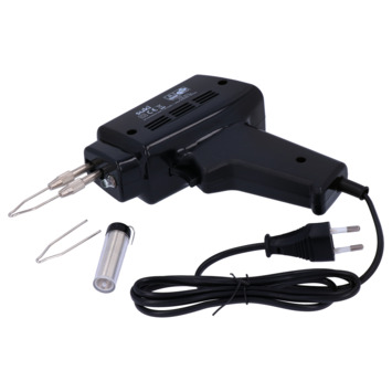 Het Suki soldeerpistool van 100 W is geschikt voor zachtsolderen. Dit is het solderen van onder andere elektra-onderdelen. Maar ook is dit soldeerpistool geschikt voor het solderen van dunne bedrading en metalen. De soldeerbout heeft een fijne, platte punt, oftewel soldeerstift, met een diameter van 5,8 mm. Het soldeerpistool is vergelijkbaar met een elektrische soldeerbout, maar heeft een soldeerpunt in de vorm van een metalen lus. Het pistool van 100 W voor soldeerwerk is geschikt voor kortstondig gebruik en is binnen enkele seconden op werktemperatuur. Bovendien heeft het soldeerpistool als bijkomend voordeel een werklicht dat de plek van solderen verlicht. Op zoek naar een soldeerbout tot 100 W? Je vindt ze in het GAMMA assortiment.