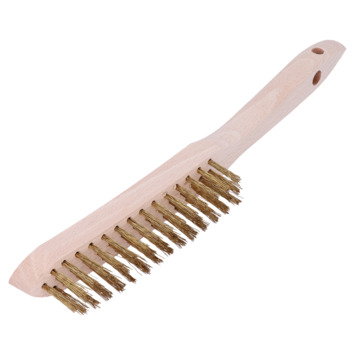 Deze suki-draadborstel met 3 rijen draden van messing is ideaal voor het reinigen van kwetsbare materialen. De zachte messing draden beschadigen het te borstelen materiaal namelijk niet. Zo is de draadborstel bijvoorbeeld te gebruiken voor het uitborstelen van houtnerven. Het hout wordt niet beschadigd. Bovendien geeft de draadborstel ook geen vlekken op het hout, zoals een staalborstel wel zou doen. Zoek je een andere draadborstel dan deze draadborstel met 3 rijen messing? Bekijk het GAMMA borstel-assortiment.