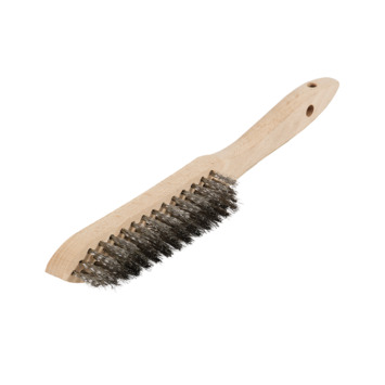 Deze suki-draadborstel met 3 rijen draden van roestvaststaal (inox) is ideaal voor het reinigen van metaal. Zo kan de rvs-draadborstel worden gebruikt tijdens laswerkzaamheden om fijne deeltjes weg te borstelen. Tevens is de draadborstel met 3 rijen rvs geschikt voor reinigingswerkzaamheden in een vochtige omgeving en daar waar geen roestende deeltjes gewenst zijn. De rvs-draden roesten namelijk niet. Zoek je een andere draadborstel dan deze draadborstel met 3 rijen rvs? Bekijk het GAMMA assortiment aan borstels.