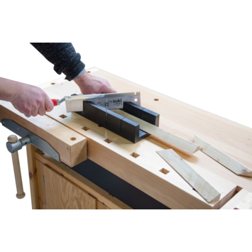 Zowel links- als rechtshandigen kunnen de suki-toffelzaag gebruiken. De zaag is namelijk omkeerbaar en daardoor speciaal geschikt voor beide handen. De zeer fijne zaag heeft 12 geharde tanden per inch en is daarmee geschikt voor precisiewerk, zoals het zagen van lijstwerk, plintjes en kunststof profielen. Echt voor de fijne houtbewerking dus. De fijne tanden zorgen voor een heel smalle zaagsnede. Of u nu links- of rechtshandig bent, voor het beste zaagresultaat met de toffelzaag gebruikt u een suki-verstekbak.