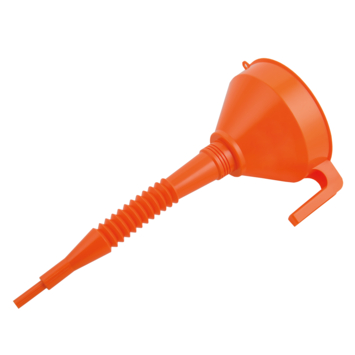 De Suki-olietrechter met flexibele tuit is geschikt voor het overhevelen van olie, brandstoffen en andere niet-bijtende vloeistoffen. De olietrechter is gemaakt van kunststof en heeft een diameter van 16cm. Daarnaast is de trechter met flexibele tuit voorzien van een handgreep, zodat de olietrechter makkelijk te bedienen is. Tevens heeft de olietrechter een metalen vuilzeefje dat vuil uit de olie zeeft. Naast deze olietrechter met flexibele tuit is er ook een olietrechter met korte tuit in het assortiment.