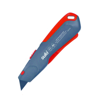 Dit extra veilige universeelmes van suki is zeer handig en veilig in gebruik. Door de pal in de handgreep in te knijpen komt het mes naar buiten en is direct klaar voor gebruik. Door de pal weer los te laten verdwijnt het mesje weer veilig in de handgreep. De extra blokkeerknop verhindert het onbedoeld uitschuiven van het mesje. Je bevestigt er desgewenst ook haakmesjes in. Daarmee is het comfortabele universeelmes van suki ideaal voor het snijden van tapijt en andere soorten vloerbedekking. In het suki assortiment vind je een messenhouder met riembevestiging, zodat je het handige mes makkelijk meeneemt. Ook vind je er reservemesjes voor dit veilige universeelmes.