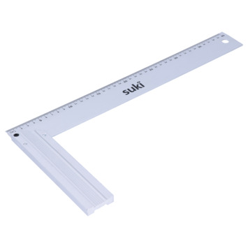 De suki-winkelhaak 400mm is een solide aluminium winkelhaak. Met de winkelhaak, ook wel bekend als platte haak of blokhaak, zet je rechte hoeken uit of controleer je hoeken op haaksheid. Zo is de aluminium haak ideaal voor het aftekenen van haakse hoeken en hoeken van 45º. De winkelhaak is 400mm lang en voorzien van een mm- en cm-schaalverdeling, zodat je de haak tot de millimeter nauwkeurig kunt aflezen. Gamma heeft dit type winkelhaak ook beschikbaar als winkelhaak met een lengte van 300mm.