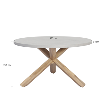 Deze stoere ronde tuintafel Boris is een echte eyecatcher voor in jouw tuin. Het tafelblad is gemaakt van polystone en heeft een betonlook. Het materiaal polystone is onderhoudsvriendelijk en weersbestendig. Het robuuste frame is gemaakt van hardhout en heeft een eigentijds ontwerp. Wanneer je op zoek bent naar een robuuste, moderne eettafel voor in de tuin, dan is tuintafel Boris de juiste keuze.