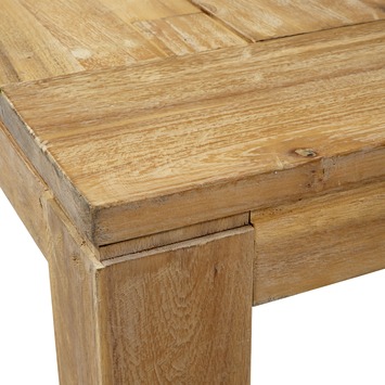 Prachtige ruikend tafel. Zeer degelijke afwerking en toch aantrekkelijk geprijsd. Poten staan op kunststof schroefdoppen los van de grond waardoor de poten veel minder zullen leiden onder optrekkend vocht.