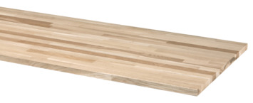 Dit werkblad van gevingerlast eiken hout kan worden gebruikt voor bijvoorbeeld het maken van een leuk bureau of werktafel. Het blad heeft een afmeting van 126x61 cm en de dikte is 26 mm.